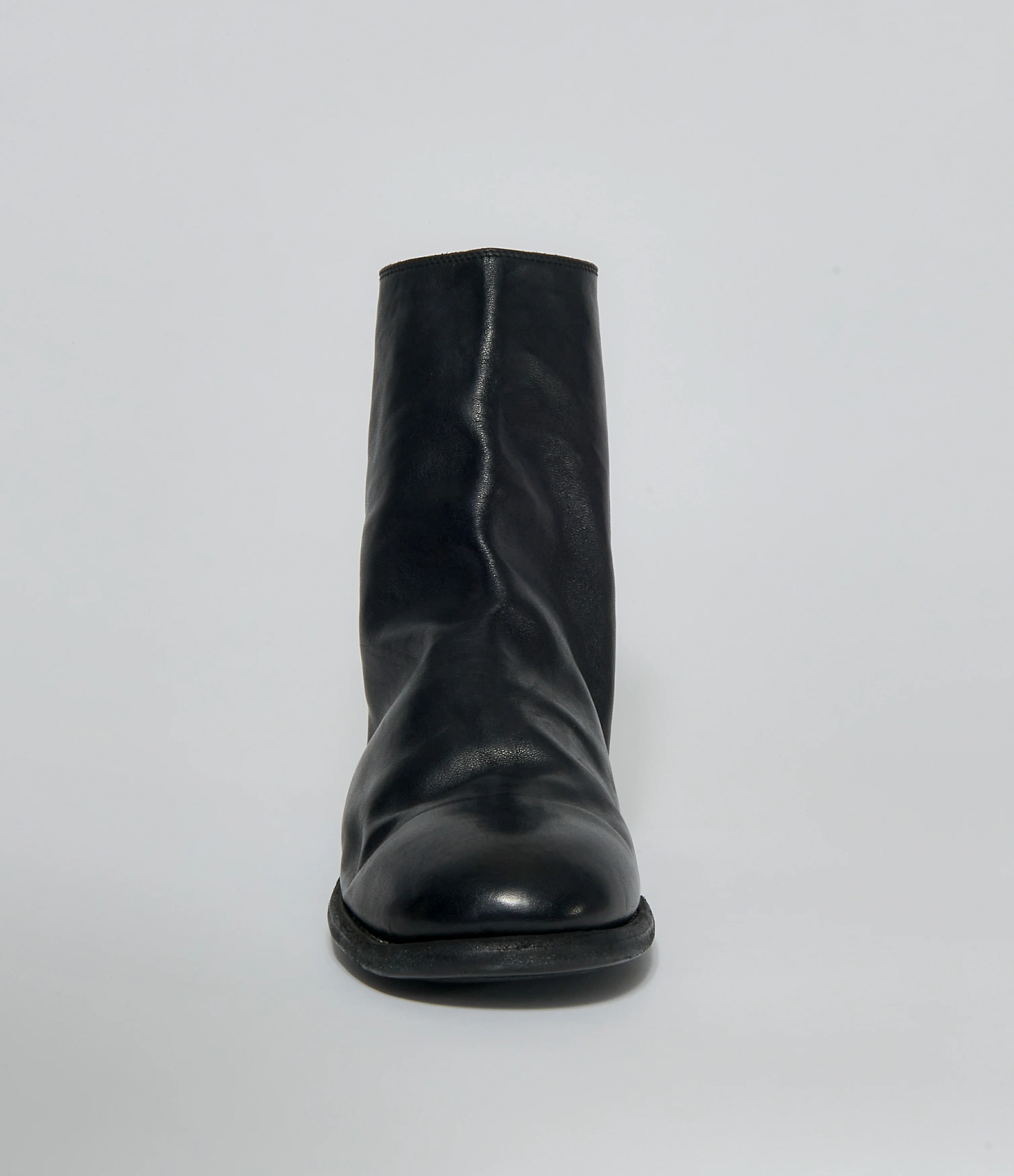Horse full grain leather ankle boot in black. Back zip closure. Lined. Full leather outsole with 40mm heel. Goodyear construction. Comes with additional rubber soles that can be attached by a cobbler. 100% horse. IT sizing. Made in Italy.